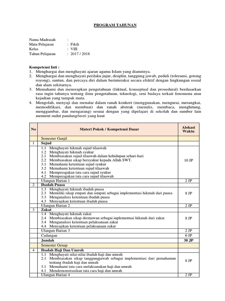 Prota Fiqih Kelas 8 from imgv2-2-f.scribdassets.com Silabus digunakan untuk menyebut suatu produk pengembangan kurikulum berupa penjabaran lebih lanjut dari standart kompetensi dan kemampuan. Materi fiqih kelas vii semester gasal. Hal ini sangat berarti bagi hasil belajar peserta didik selama mengikuti kbm anda. Sujud syukur & tilawah, puasa dan zakat. B) hibah diberikan kepada seseorang atas dasar rasa kasih sayang, iba atau ingin mempererat tali silaturrahim. Fiqih viii mts agung alim 1 materi fiqih kelas viii kelas viii/semester 1 1. Buku fikih kurikulum 2013 kelas 7 mts dapat diunduh di sini dan untuk kelas 9 mts bisa juga diunduh di sini. Buku guru fikih kelas 8 mts k13.