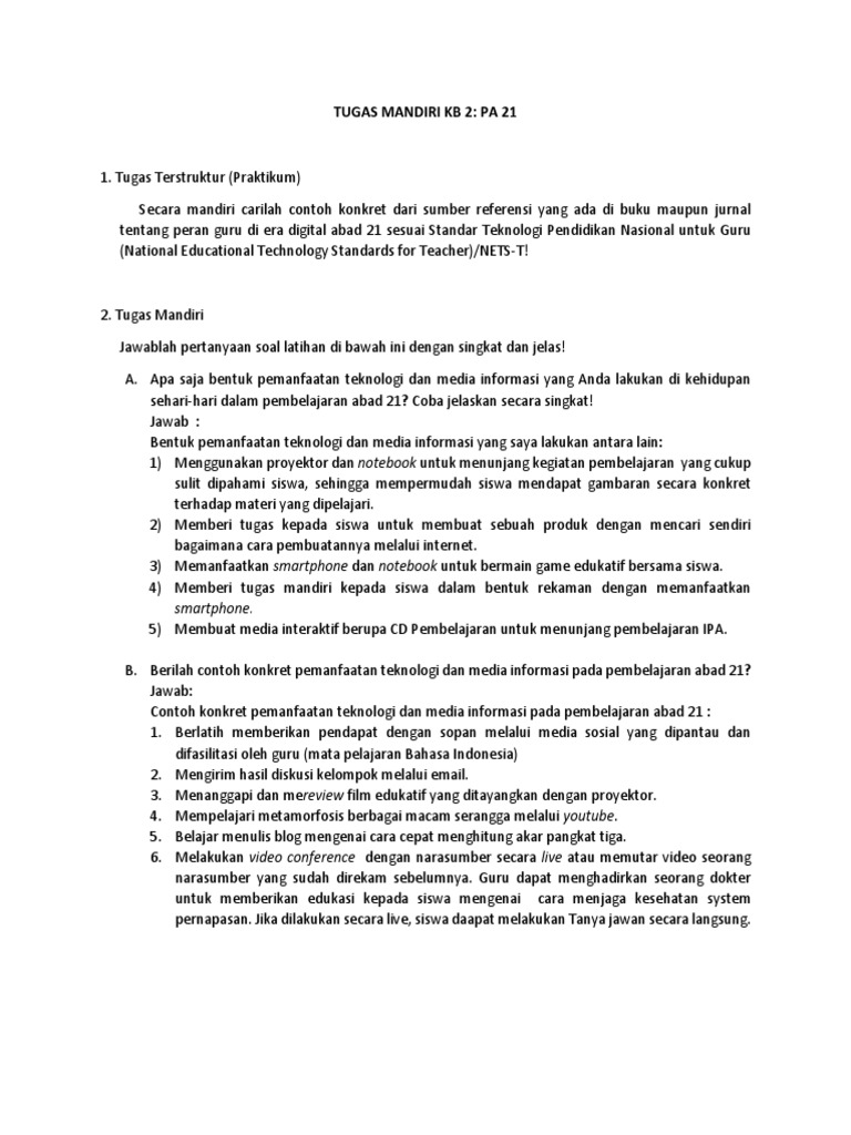 / Salah Satu Contoh Tugas Mandiri Siswa Yaitu : Doc Tugas Mandiri Diksar Untuk Guru Paud Samia Fuhaid Academia Edu : Ternyata terjadi kekeliruan, yaitu ada satu halaman yang.