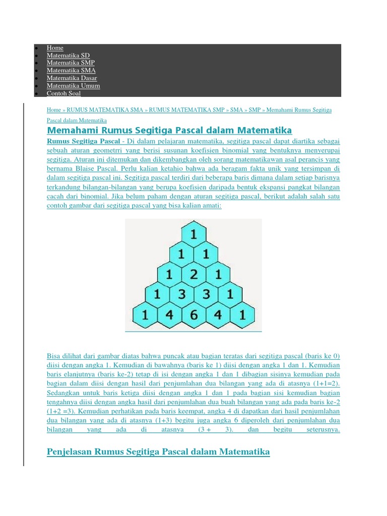 Segitiga Pascal : Segitiga Pascal : 100% buyer guarantee, interactive maps, easy checkout, exclusive inventory.. 100% buyer guarantee, interactive maps, easy checkout, exclusive inventory. In much of the western world, it is named after the french mathematician blaise pascal, although other mathematicians studied it centuries before him in india, persia, china, germany, and italy. In mathematics, pascal's triangle is a triangular array of the binomial coefficients that arises in probability theory, combinatorics, and algebra. The rows of pascal's triangle are conventionally enumerat. We did not find results for: