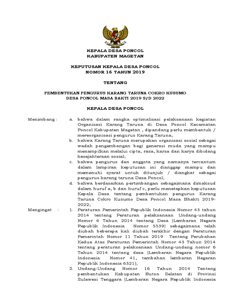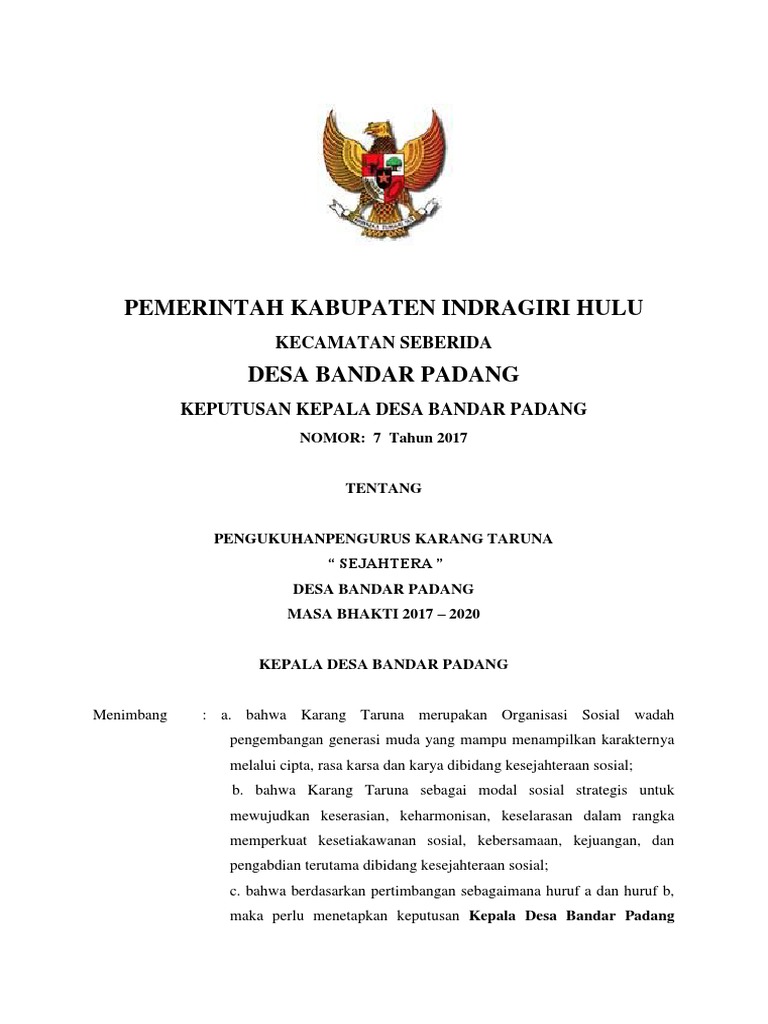 Asas dan tujuan karang taruna desa. Sk gub nomor 393 tahun 2020 /tgl. Berikut merupakan keputusan kepala desa rogodadi nomor : Terima kasih telah berkunjung ke blog berbagai struktur penting 2019. Bahwa dalam rangka optimalisasi pelaksanaan kegiatan organisasi karang taruna di.